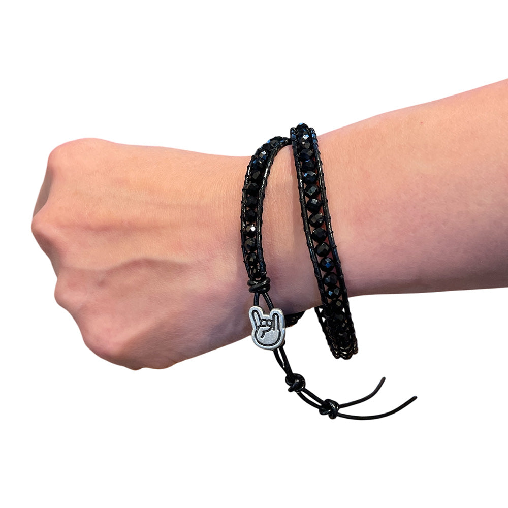 天然石(ブラックオニキス)のきらめきをあしらった、Rockon Social Club公式ブレスレット。
